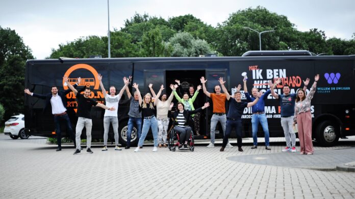 ‘De Willem Diploma Crew’, een groep enthousiaste docenten, stapte in de bus en oefende het ritueel eerst voor de school, zodat dit bij de leerlingen voor de deur vlekkeloos zou verlopen. De route zat niet helemaal mee, want er waren geregeld wegafsluitingen, omleidingen, te krappe straten en sommige leerlingen woonden in straatjes waar onmogelijk een bus in kon. Dat mocht de pret niet drukken, want vijftien docenten zijn niet voor één gat te vangen: er was altijd een oplossing en de een wist het nog beter dan de ander.