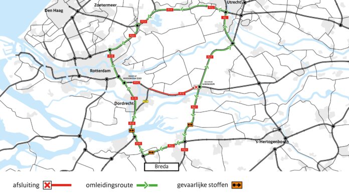 Vervoer met gevaarlijke stoffen wordt omgeleid via de A27, A59 en A16.