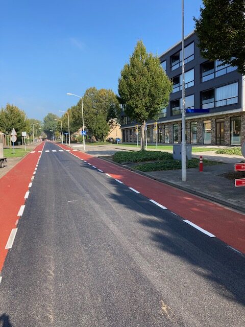 PAPENDRECHT – Vrijdag 8 oktober is de laatste hand gelegd aan de vernieuwde Pieter Zeemanlaan. Wethouder Kees de Ruijter (verkeer) verrichtte de openingshandeling. Het asfalt in de Pieter Zeemanlaan was aan vervanging toe. Vanaf vrijdag 20 september kreeg deze weg een opknapbeurt. Dit moment is aangegrepen om ook goed te kijken naar de verkeersveiligheid van deze belangrijke verkeersader in Papendrecht. Waar het past, is het vrijiggende fietspad doorgetrokken. Op het smallere stuk van de weg is er ruimte voor de fiets in de vorm van rood asfalt: een ‘suggestiestrook’.
