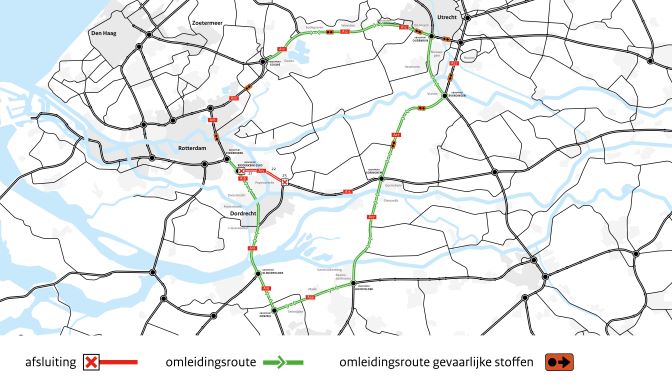 – Het doorgaand verkeer van A15 of A27 wordt bij Gorinchem omgeleid via de A27, A59 en A16.