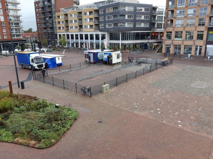 Vanaf maandag 18 oktober worden de huidige fietsenrekken op het plein geleidelijk aan weggehaald. Tot de opening van de overdekte fietsenstalling blijft de huidige fietsenstalling wel bereikbaar.