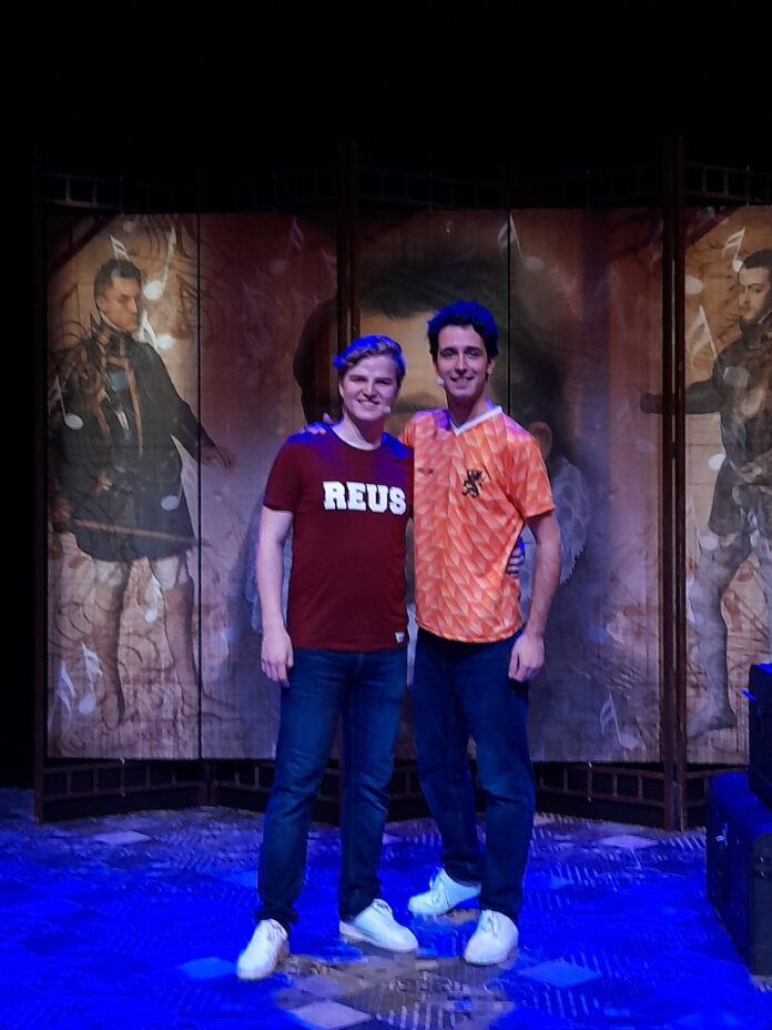 Foto: Luuk Haaze en Merijn Oerlemans, die Willem en Jan van Oranje en Koning Filips II spelen