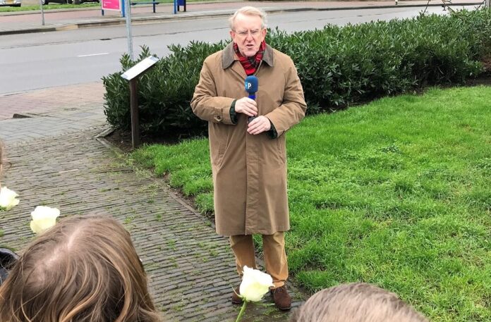 Voorzitter Wim de Leur sprak de aanwezigen toe. Hij richtte zich daarbij met name tot een aantal leerlingen uit groep 8 van de Oranje-Nassau school. In zijn toespraakje benadrukte hij dat het discrimineren van mensen die ‘anders zijn’ niet meer mag gebeuren. Hij wees daarbij ook op de landen en gebieden in onze hedendaagse wereld waar dit toch gebeurt.