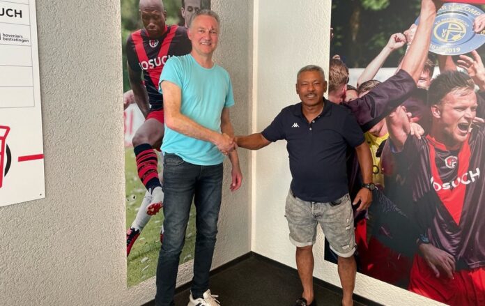 PAPENDRECHT – Voetbalvereniging Papendrecht heeft Derrick Jap-a-Joe vastgelegd als nieuwe trainer van het tweede elftal van de A-selectie zaterdag, dat uitkomt in de reserve Hoofdklasse Zuid I. Onder het toeziend oog van Bert Duthler van de Technische Commissie Heren tekende Derrick Jap-a-Joe (rechts op de foto) zijn contract.