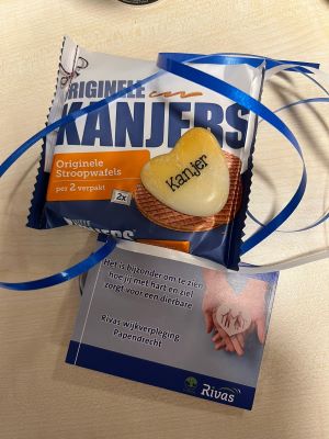 PAPENDRECHT – Medewerkers van Rivas Wijkverpleging in Papendrecht verrassen mantelzorgers van cliënten deze week met een kleine attentie. Vanwege de Dag van de Mantelzorg op donderdag 10 november krijgen zij in de week van 7 tot en met 14 november een Kanjer-stroopwafel, een hartvormige steen met tekst en een mooi bedankkaartje.