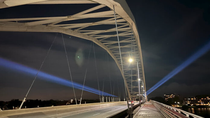 DRECHTSTEDEN – Vanaf vandaag tot en met 19 november staat de regio Drechtsteden letterlijk in de spotlights. Met superzuinige lampen worden bruggen en gebouwen verlicht om te laten zien wat het verleden met de toekomst verbindt: het gevecht tegen klimaateffecten en het water. De Sint-Elisabethsvloed van 1421 veranderde het gebied voorgoed. Een historisch moment dat de regio vormde en nu, 600 jaar later, wordt herdacht. Lichtkunstenaars van Het Mothership maakten het lichtontwerp en zetten de spotlights aan.
