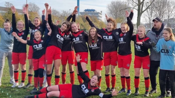 Even later gaf Fenna een mooie bal op Amber en die liet de kans niet liggen: 3-0. Bij die stand was het kampioenschap, met nog een speelronde te gaan, binnen. Na het laatste fluitsignaal was het tijd voor confettikanonnen en rookfakkels, uiteraard in de kleuren rood en zwart. De tegenstanders waren ontzettend sportief en kwamen hun felicitaties overbrengen. Na de nodige festiviteiten op het veld verhuisde het feest naar de kantine voor een oververdiend rondje drinken.