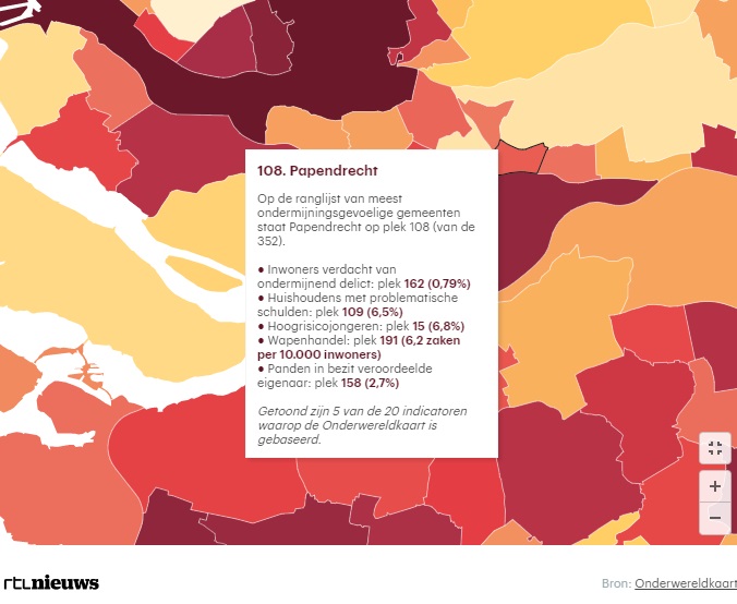 In de zogeheten Onderwereldkaart vergeleek RTL Nieuws alle 352 Nederlandse gemeenten op basis van twintig indicatoren die iets zeggen over het risico op ondermijning, zoals leegstand, schulden of wapenhandel.