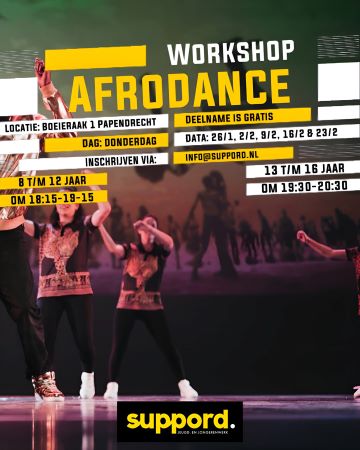 Wil je meedoen? Schrijf je dan in via info@suppord.nl. Prijs: gratis. Locatie: grote activiteitenruimte Suppord (Boeieraak 1). Leeftijd: jeugd 8-12 en jongeren 13 – 16.