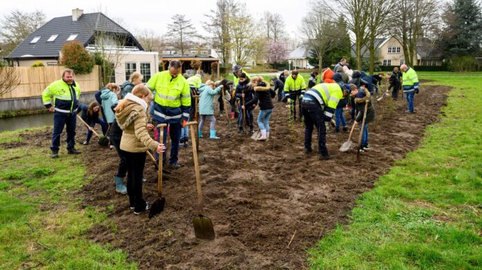 PAPENDRECHT – Tijdens de boomfeestdag afgelopen woensdag hebben 37 leerlingen uit groep 7 van de Prins Florisschool heesters geplant in park Wilgendonk. Wethouder groen Jan Dirk van den Borg assisteerde twee leerlingen met het planten van de eerste heesters.