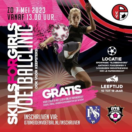 PAPENDRECHT – Op zondag 7 mei vindt op sportpark Slobbengors een speciale voetbaldag voor meiden plaats. De Skills for Girls Voetbalclinic wordt georganiseerd door Voetbalvereniging Papendrecht in samenwerking met Football Skills Nederland en 078meidenvoetbal.