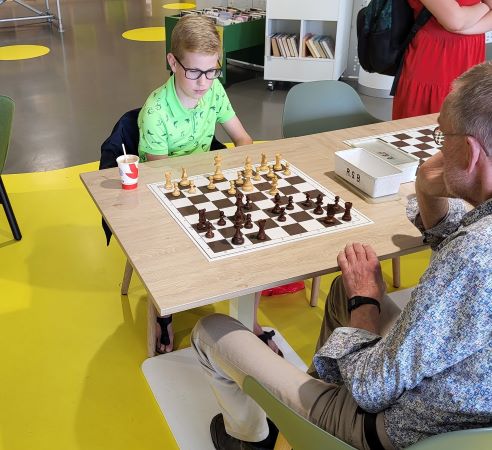 Sommige schakers hebben deze mogelijkheid pas net ontdekt. Zo ook Jelle, die vorige week voor de tweede keer speciaal naar de bieb kwam om te schaken. En hij was niet de enige die terug kwam. Je hoeft niet af te spreken, je mag gewoon langs komen.