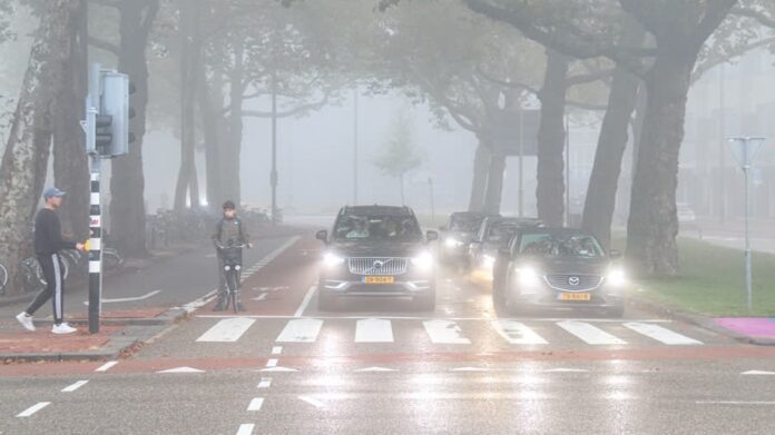 Mag je met deze mist de mistlichten van je auto aanzetten? “Het mistlicht aan de voorkant in ieder geval wel. Dat mag bij een zicht van minder dan 200 meter”, zegt Aldus. De mistlichten aan de achterkant van je auto mogen niet aan: dat mag pas bij een zicht onder de 50 meter.