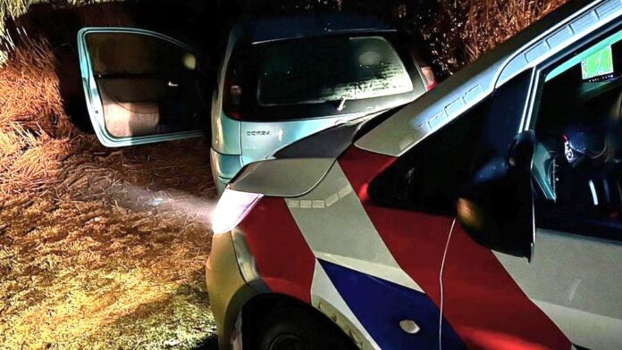 In zijn wanhopige ontsnappingspoging dook de inbreker, ondanks de vrieskou, de sloot in. Vervolgens probeerde hij via het naastgelegen weiland te ontsnappen, maar dat wisten agenten te voorkomen. Ze gebruikten hierbij hun stroomstootwapen. De man kon hierbij worden aangehouden.