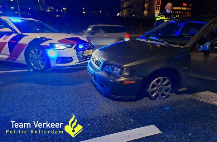De politie wist op de Van Brienenoordbrug bij de auto te komen, maar kon de automobilist pas tot stoppen dwingen op het Kralingseplein. Hiervoor waren meerdere eenheden nodig.