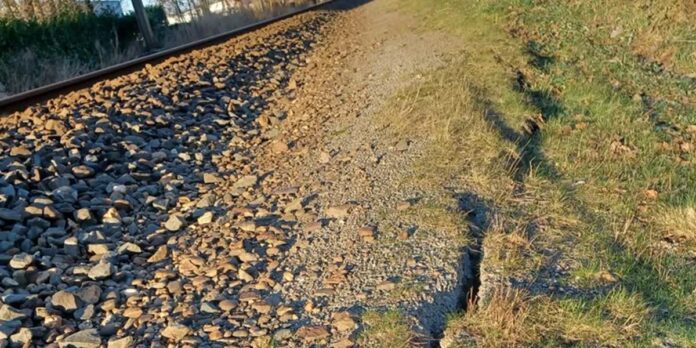 De scheur van maar liefst 65 meter lang werd twee weken geleden ontdekt door ProRail. Vermoedelijk heeft de vele regenval van de laatste maanden invloed gehad op de sterkte van de spoordijk. De komende tijd onderzoekt ProRail samen met de mogelijke oorzaak en oplossingen om de spoordijk te herstellen. De plek van de scheur is echter lastig te bereiken, omdat aan beide kanten van de spoordijk een sloot ligt.