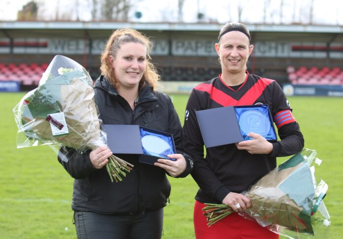 PAPENDRECHT – Op zaterdag 2 maart stond voor Vrouwen 1 van Voetbalvereniging Papendrecht een thuiswedstrijd op het programma. Voorafgaand aan de aftrap werden Talitha Bothof en aanvoerder Petra Dugardein in het zonnetje gezet. Beide dames hebben de mijlpaal van honderd wedstrijden in Papendrecht VR1 behaald.