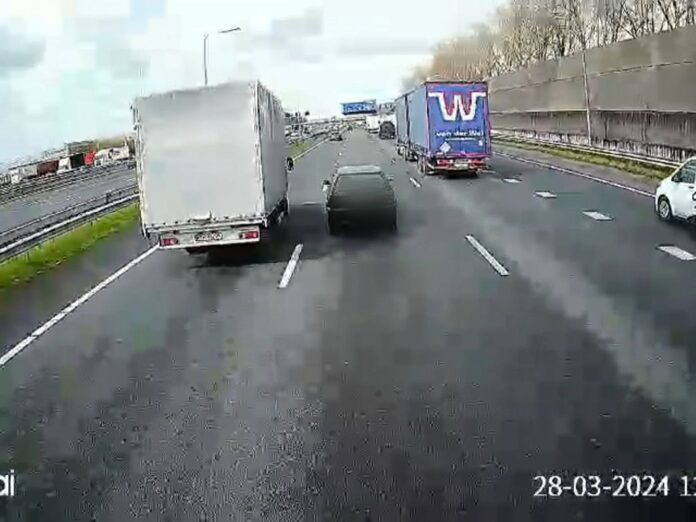 Het is rond 12:45 uur als de zwarte personenauto abrupt tot stilstand komt op de middelste rijstrook van de snelweg. Een vrachtwagenchauffeur ziet het stilstaande voertuig te laat en kan de auto niet meer ontwijken.