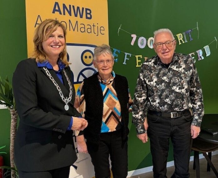 PAPENDRECHT – Een feestelijk moment voor ANWB AutoMaatje Papendrecht, de vrijwillige vervoersdienst van Sterk Papendrecht. Op 15 april werd de 100e rit gereden! Chauffeur Ad Scheepbouwer reed het 100e ritje en haalde het echtpaar de Haan thuis op om samen met hen dit mooie moment te vieren bij LOEF, een werk- en dagbestedingslocatie van Philadelphia. Coördinator Sascha Zonneveld had zich samen met alle vrijwilligers van AutoMaatje verzameld om het echtpaar feestelijk te onthalen met bloemen.
