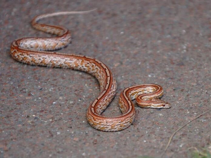 Op een fietspad in de Rembrandtlaan in Papendrecht is zondag een rode rattenslang gevonden.