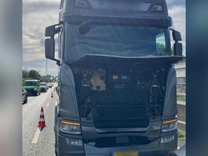 De vrachtwagen kwam op de linker rijstrook stil te staan. Het lukte niet om het voertuig op te schuiven, meldt een woordvoerder van Rijkswaterstaat. Er kwam een berger om de vrachtwagen van de weg te krijgen. Welk ander voertuig bij het ongeluk was betrokken, is niet bekend.