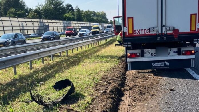 Op de A15 is in de richting Rotterdam dinsdagmiddag een vrachtwagen met een klapband stil komen te staan ter hoogte van Sliedrecht. De vertraging die dit veroorzaakte liep rond 17:30 uur, midden in de avondspits, op tot bijna anderhalf uur.
