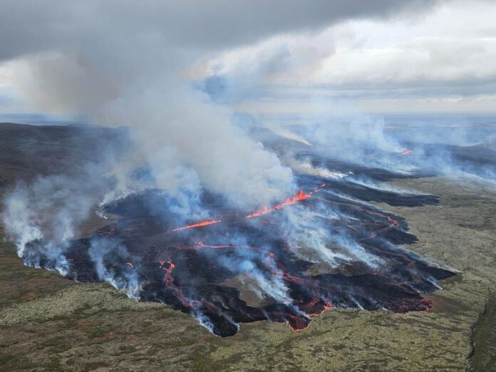 Donderdagavond was er voor de zesde keer sinds december een vulkaanuitbarsting op het IJslandse schiereiland Reykjanes, zo’n vijftig kilometer ten zuidwesten van de hoofdstad Reykjavik. Door de uitbarsting ontstond een scheur van vier kilometer in de Sundhnúkur-krater, waar rode lava uit kwam.