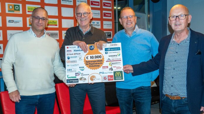 Bij atletiekvereniging Passaat werd afgelopen maandag de opbrengst van de 4e Papendrecht Cirkelloop overhandigd aan hospice De Cirkel. De opbrengst was dit jaar 9.500 euro, een recordbedrag.