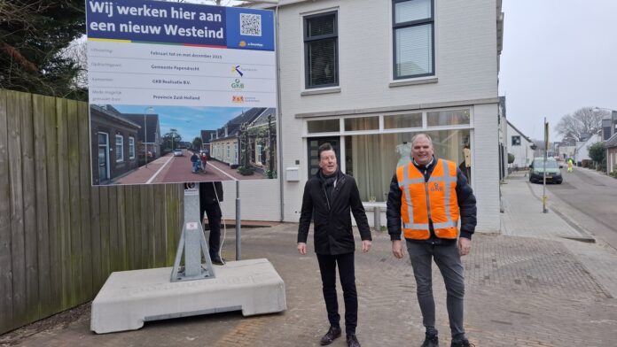 Met de onthulling van een groot bord heeft wethouder Arno Janssen het startsein gegeven voor de werkzaamheden aan het Westeind in Papendrecht. Aannemer GKB Realisatie B.V. zal de werkzaamheden dit jaar afronden.