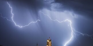 Bliksem slaat in op schoorsteen in Randwijk