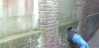 Hilarisch: man probeert in te breken door heel klein gat