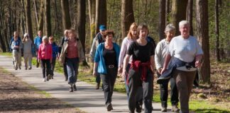 Eerste wandelgroep die in de avond gaat lopen