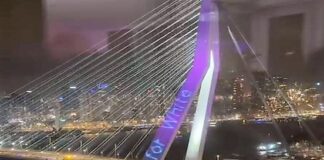 Zwijndrechter (24) aangehouden voor projecteren discriminerende teksten op Erasmusbrug