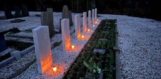 Lichtjes op de oorlogsgraven op Kerstavond