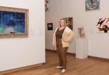 Foto: Kevita Junior: Femke Hameetman voor een schilderij uit de Papendrechtse collectie De Rietgors