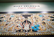 DORDRECHT - Een vuist maken tegen het leenstelsel. Dat is wat illustrator Mart Veldhuis voor ogen had bij het maken van zijn indrukwekkende wandtapijt...
