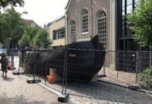 DORDRECHT - Het is moeilijk te zien met de hekken eromheen, maar als je goed kijkt zie je hem. De 15 meter lange tjalk...