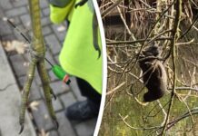 Hulpeloos zat een waterhoentje maandagmiddag ondersteboven vast in een boom aan de Gravensingel in Dordrecht. Wat bleek: de vogel had visdraad...