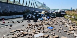 Ravage en lange file op A16 door gekantelde vrachtwagen