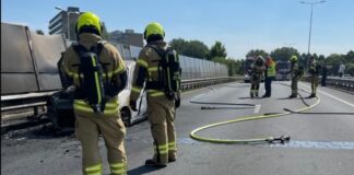 Lange file N3 na ongeval met drie vrachtwagens op Merwedebrug