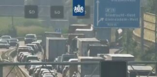 Lange file door autobrand op A16