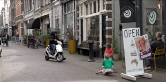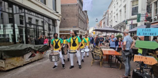 Vlaggenparade in de Voorstraat door jubilerend Pictura